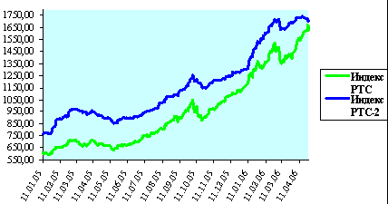 Для того, чтобы у инвесторов появился наглядный индикатор состояния этого динамичного сегмента фондового рынка Группа РТС рассчитывает индекс акций "второго эшелона" – Индекс РТС-2 .