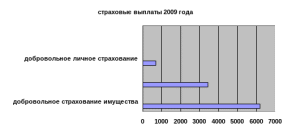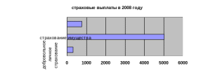 Сравнивая страховые выплаты 2008 - 2009 года можно отметить, что основная доля выплат за два года приходится на добровольное имущественное страхование. Объем страховых выплат в этом сегменте в 2009 году вырос на 23%, с 5032 тысячи рублей до 6199 тысяч рублей. Рост выплат служит косвенным подтверждением увеличения объемов реального страхования добровольной ответственности.