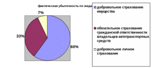 Фактическая убыточность по добровольному имущественному страхованию равна 0,60, то есть 60% выплат пришлось на этот вид страхования.