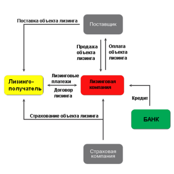 Основной момент в Лизинге заключается в том, что собственником объекта лизинга (оборудование, автомобили, недвижимость и т.д.) остается Лизинговая компания (Лизингодатель) до момента выкупа объекта Лизингополучателем. То есть право пользования к Лизингополучателю переходит сразу же после получения объекта лизинга, а право собственности только после выкупа. Общая схема лизинга (Рисунок 5)