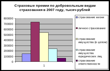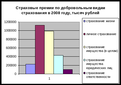 Из таблицы видно, что на рынке страхования заметно значительное развитие в добровольных видах страхования. Также можно отметить, что страхование имущества юридических лиц выросло на 78,75 % по сравнению с 2007 годом.