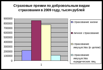 В 2009 году было собрано страховых премий по добровольным и обязательным видам страхования (кроме обязательного медицинского страхования) в размере 2 816 040 тысяч рублей. На добровольные виды страхования приходится 1071105 тысяч рублей Из них на добровольное страхование жизни - 215 326 тысяч рублей. На личное страхование (кроме страхования жизни) - 855 779 тысяч рублей. На страхование имущества (в целом) приходится - 768 648 тысяч рублей, из них на страхование имущества юридических лиц приходится 115894 тысяч рублей. На обязательное медицинское страхование приходится 5 615 409 тысяч рублей (Приложение Д).