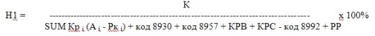 Н3 = 76 891 853 / 21 313 700 × 100 = 360%