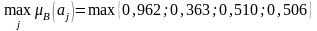 Оптимальной считается альтернатива, с максимальным значением функции принадлежности, к множеству В. Операция пересечения нечетких множеств соответствует выбору минимального значения для j-й альтернативы: