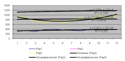 Соединив точки, построенные по фактическим данным, получим ломаную линию, на основании которой затруднительно вынести суждение о характере общей тенденции в изменении величины риска.