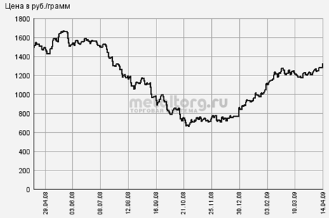 Золото Динамика цен с 29.04.2008 по 14.04.2009