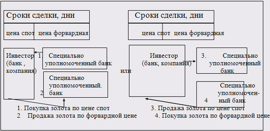 Сделки своп - это сделки покупки/продажи с одновременной продажей/покупкой одного и того же количества металла. Банки применяют следующие сделки своп: