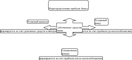 Собственные средства банка состоят из различных фондов, имеющих свое целевое назначение и различные источники формирования, которые в обобщенном виде можно представить на рисунке 2.