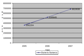 На рисунке 8. представлена динамика изменения валюты баланса ЗАО АКБ «ТатИнвестБанк» в 2005-2007 гг.