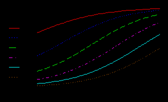 Хаpактеp кpивой селективности ячеи и сетного мешка можно уточнить, если диапазон селективности pассматpивать pаздельно в интеpвале от l0,25 до l0,5 и от l0,5 до l0,75 и другими способами(Мельников, 1985, 1991 и т.д.). Однако, как показали дальнейшие исследования, эти уточнения в практических расчетах можно не учитывать. Пример семейства кривых селективности для различного размера ячеи приведен на рис. 1.1.