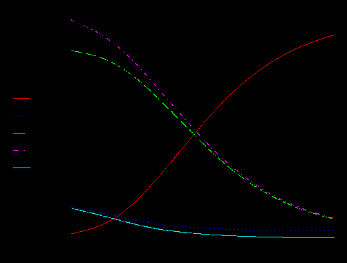 Размер ячеи в основных уравнениях селективности входит в функцию кривой селективности. Уравнения (2.1) - (2.4) не содержат допущений, и точность полученных с их помощью результатов зависит только от точности исходных данных. Все четыре показателя в левой части этих уравнений являются основными показателями эффективности лова. Их и регламентирующие селективность лова показатели с учетом заданных ограничений определяют путем решения на ЭВМ уравнений по известным исходным данным. В результате такого решения получают материалы, например, для построения графиков прилова рыб непромысловых размеров и ухода через ячею рыб промысловых размеров в зависимости от размера ячеи. Пример таких графиков приведен на рис. 2.1.