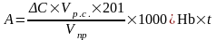 Hb – содержание гемоглобина в опытной пробе, г/л;