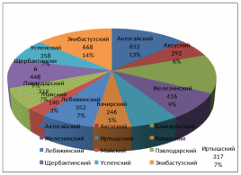 Как видно по результатам таблица большее количество лисиц и корсаков обитает на территории резервного фонда охотничьих угодий Экибастузского и Актогайского района, в Экибастузском районе лисиц и корсаков соответственно – 1585, 668, в Актогайском районе – 1092, 652 соответственно.
