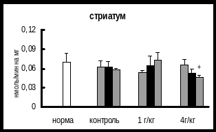 | Стриатум | 0,153±0,013 | 0,168±0,015 | 0,195±0,012< |