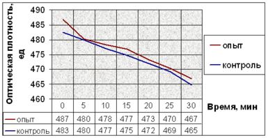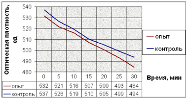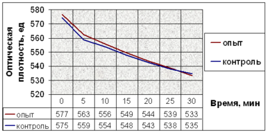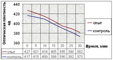 Агрегация тромбоцитов исследована фотометрическим методом Борна [4]. Принцип метода основан на регистрации снижения оптической плотности исследуемой плазмы после введения в неё тромбоцитагрегирующего агента. Происходит «склеивание» тромбоцитов, образующиеся агрегаты постепенно оседают и проба плазмы становится более прозрачной.