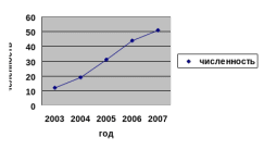 Рисунок 5- График численности ондатры на озере Дворцы по данным осенних учётов за 2003-2007 гг.