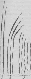 Рисунок 14 - Различные типы волос: 1 — вибрисс и направляющий; 2 — остевые; 3 — промежуточные и пуховые.