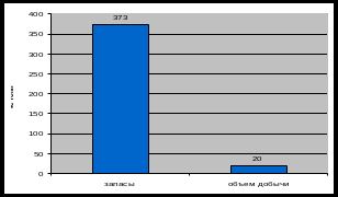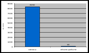 Рисунок 2 – Оценка запасов полезного ископаемого и его годовой объем добычи за 2007 год по видам сырья