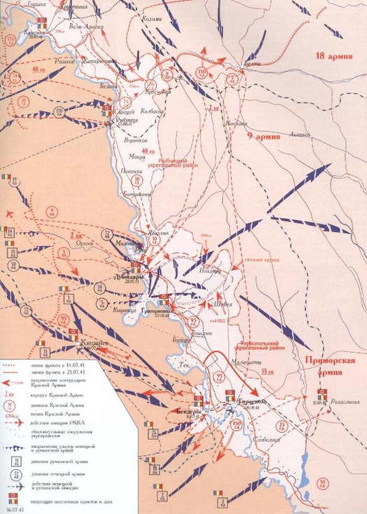 Карта обороны Приднестровья июль-август 1941 г.