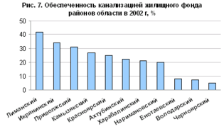 Рис. 5. Обеспеченность канализацией жилищного фонда районов области в 2002 г.