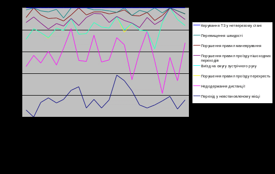Для кращої наглядності побудуємо графік, що відображає причини ДТП по Дніпропетровській області (рис 2.3.).