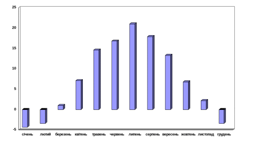 Січень є найхолоднішим місяцем року. Середні січневі температури знаходяться в межах – 4....5. В лютому середньорічна температура підвищується всього на 1,50С. В окремі роки лютий місяць буває значно холоднішим (рис. 5.1).