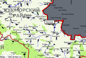 Карта Кукморского района РТ. Масштаб 1см=5км
