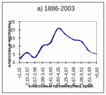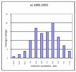 Кривые распределения среднегодовых (а, б) и зимних температур (в, г) по данным метеостанции Елатьма