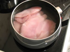 Отварная птица. Для вторых блюд (кур, цыплят, индеек) лучше отваривать целиком. Подготовленную тушку кладут в горячую воду (2- 2,5 л на 1 кг.), доводят до кипения, добавляют коренья, лук, соль и варят при умеренном нагреве 85-90С. Цыплят варят 30 – 40 мин, кур – не менее 1ч, индеек – 1,5 ч. Готовность птицы определяют проколом поварской иглой в толстой части мякоти ножки (игла свободно проходит, вытекающий из прокола сок прозрачный). Потери при варке птицы составляют 25%. Из бульона, полученного при варке кур, цыплят, индеек, приготавливают соус. Готовую птицу перед подачей разрезают на порционные куски: сначала вдоль грудки на две части, затем отделяют ножки от филейной части (и то и другое можно разделить на более мелкие порции).