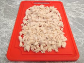 Рубленые изделия из птицы. Из птицы готовят котлетную и кнельную массу. Для которой используют сырую и отварную мякоть птицы. В куриный фарш желательно добавлять сливочное масло. Из котлетной массы формуют котлеты, биточки, фрикадельки и припускают или жарят основным способом, запонировав в молотых сухарях или тертом хлебе. Блюда из кнельной массы припускают или варят на пару.