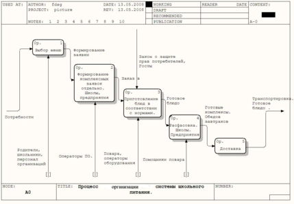 Процесс формирования заявок от родителей: родители в соответствии с комплексом меню, размещенным на сайте комбината школьного питания будут делать заявки персонально на каждого ребенка, за 1 месяц. Заявка будет приниматься непосредственно в школу через сайт. Ученик в школе будет получать свой обед по электронному талону, который школа будет выдавать на месяц. Процесс формирования заявок от предприятий: Предприятия и различные организации будут делать свои заявки на доставку готовых полуфабрикатов в соответствие с комплексом меню, через сайт комбината. Заявки будут автоматически посылаться на комбинат школьного питания.