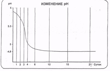 Очевидно, что уменьшение рН достигается в первые дни процесса созревания. В последующем этот показатель практически не изменяется, сохраняясь на уровне 4,8 – 4,9.