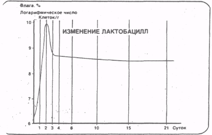 Показатель рН снижается под влиянием молочной кислоты, образуемой штаммами бактерий, естественно присутствующими или вводимыми в мясной фарш: в данном случае это Lactobacillus plantarum. В данный мясной фарш инокулировали примерно 106 лактобацилл на 1 г. В первые два дня происходит резкое увеличение числа бактерий, что в свою очередь вызывает резкое снижение рН. Вследствие комбинированного воздействия подкисления, исчезновения запахов питательных веществ (сахаров) и снижения температуры и влажности развитие лактобацилл ингибируется, начиная с третьего дня.