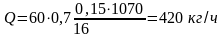 V = 0,15 – геометрическая емкость резервуара (дежи) мешалки, м3;