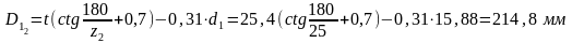 где d2 = 284 - диаметр делительной окружности зубчатого колеса, мм;