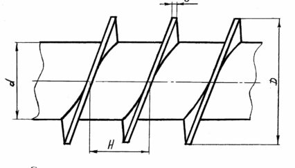 l - развертка винтовой линии , соответствующая диаметру вала, м