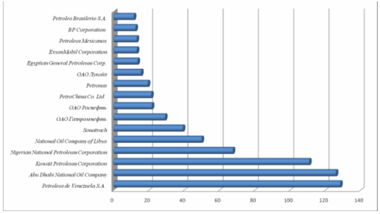 Рисунок 1. Крупнейшие нефтедобывающие компании мира (по данным PetroStrategies, Inc., 2009)