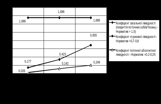 Рис.3.5 Зміна показників ліквідності ТОВ „Рамірент Україна" при впровадженні вексельних розрахунків в розрахунках