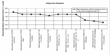 На рис.2.1 - 2.3 наведені результати аналізу відносного добового рівня орендної плати в ТОВ “Рамірент Україна" по категоріям устаткування (добова сума оренди віднесена до продажної вартості устаткування).