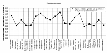 Рис.2.2 Відносний рівень добового рівня орендної плати в ТОВ “Рамірент Україна" в категорії “Електроінструмент“