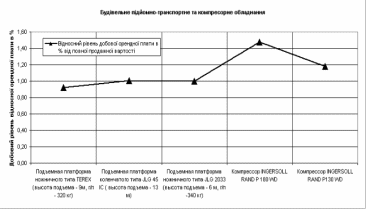 Рис.2.3 Відносний рівень добового рівня орендної плати в ТОВ “Рамірент Україна" в категорії “ Будівельне підйомно-транспортне та компресорне обладнання“