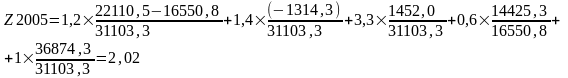 Розрахунок інтегрального показника Альтмана (у міру скептицизму по його застосування для українських підприємств) за даними балансу ТОВ "Рамірент Україна" за 2005 рік (кризовий для підприємства рік), дає наступні значення: