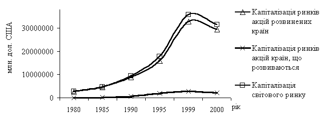 Рис. 2.3. Капіталізація світового ринку акцій [63, с.38]