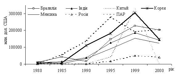 ис. 2.5 Динаміка капіталізації фондових ринків країн, що розвиваються [63, с.40]
