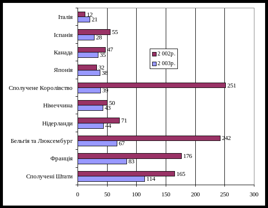 ис 2.4. Вивіз ПІІ: 10 головних країн світу, 2002 і 2003 роки (млрд. доларів) [65, с.79]