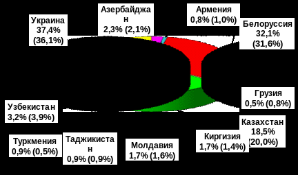 В 2008 г. мы достигли рекордной цифры товарооборота – 106,4 млрд. долл. На Украину, Белоруссию и Казахстан – наших ведущих торговых партнеров - приходилось 88% товарооборота со странами СНГ.