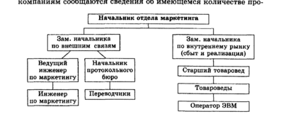 Отдел маркетинга — основное звено управления внешнеэкономической деятельностью предприятия, часть его внутрипроизводственной структуры. Вместе с тем, стоящие перед ним задачи решаются в тесном взаимодействии с другими функциональными подразделениями (ПЭО, финансовый, юридический и другие отделы).