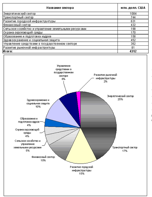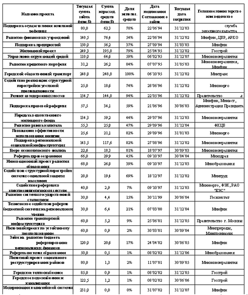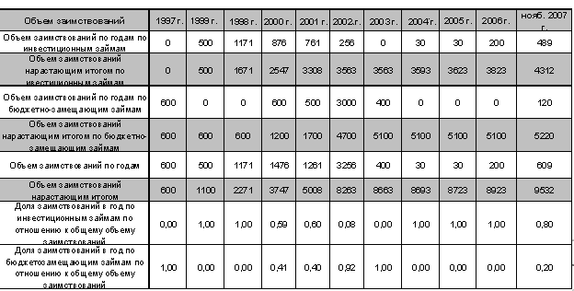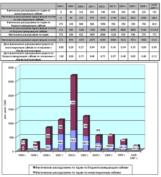 по инвестиционным и бюджетозамещающим займам (в млн. долл. США)