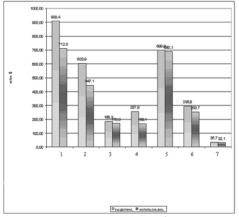 | Название региона | Выделено млн.долл. США | Использовано млн.долл. США |