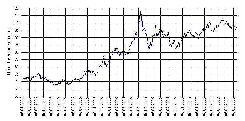 Рис.3.2. – Динаміка офіційного курсу обліку зливкового золота (999,9) НБУ у 2005 –2007 роках [51]